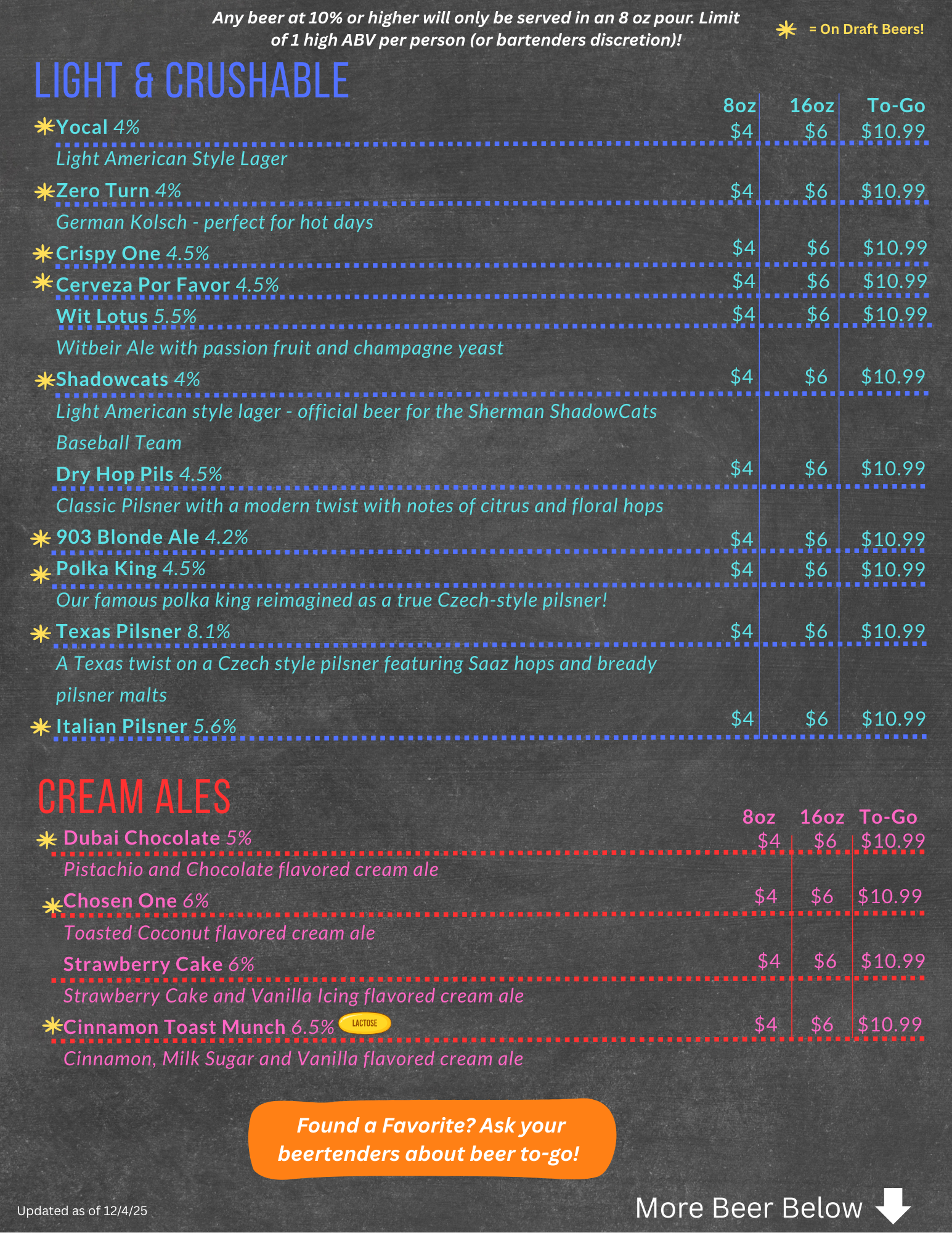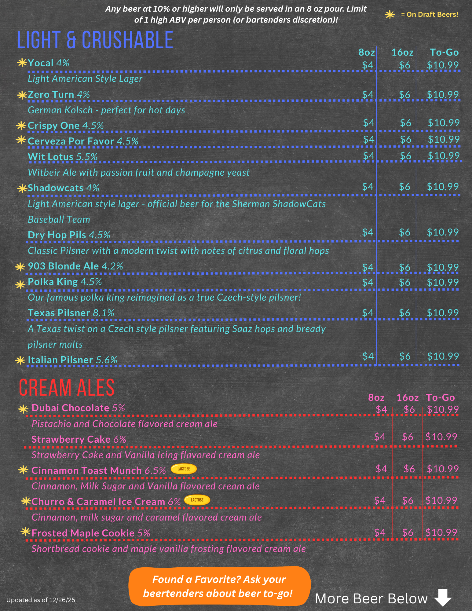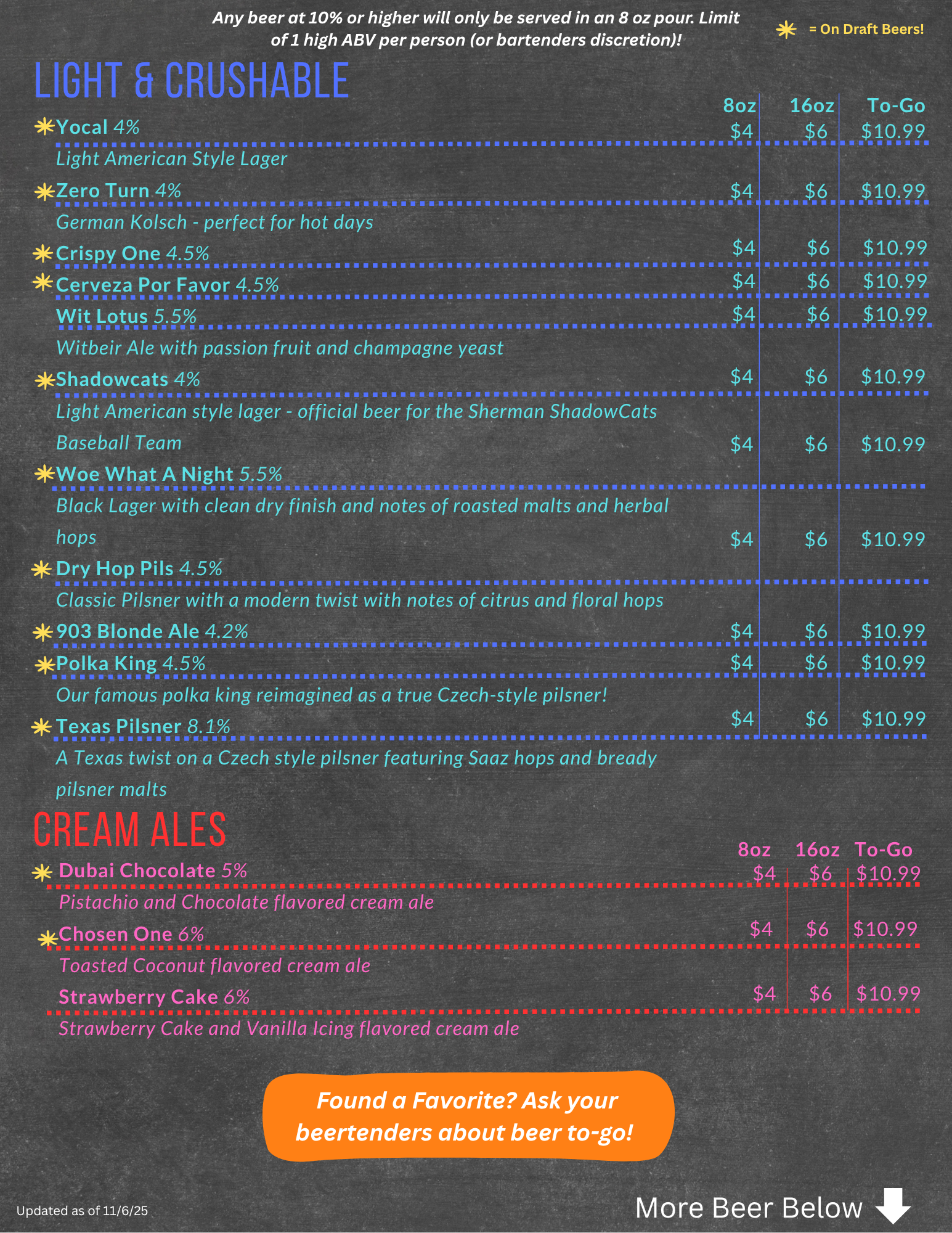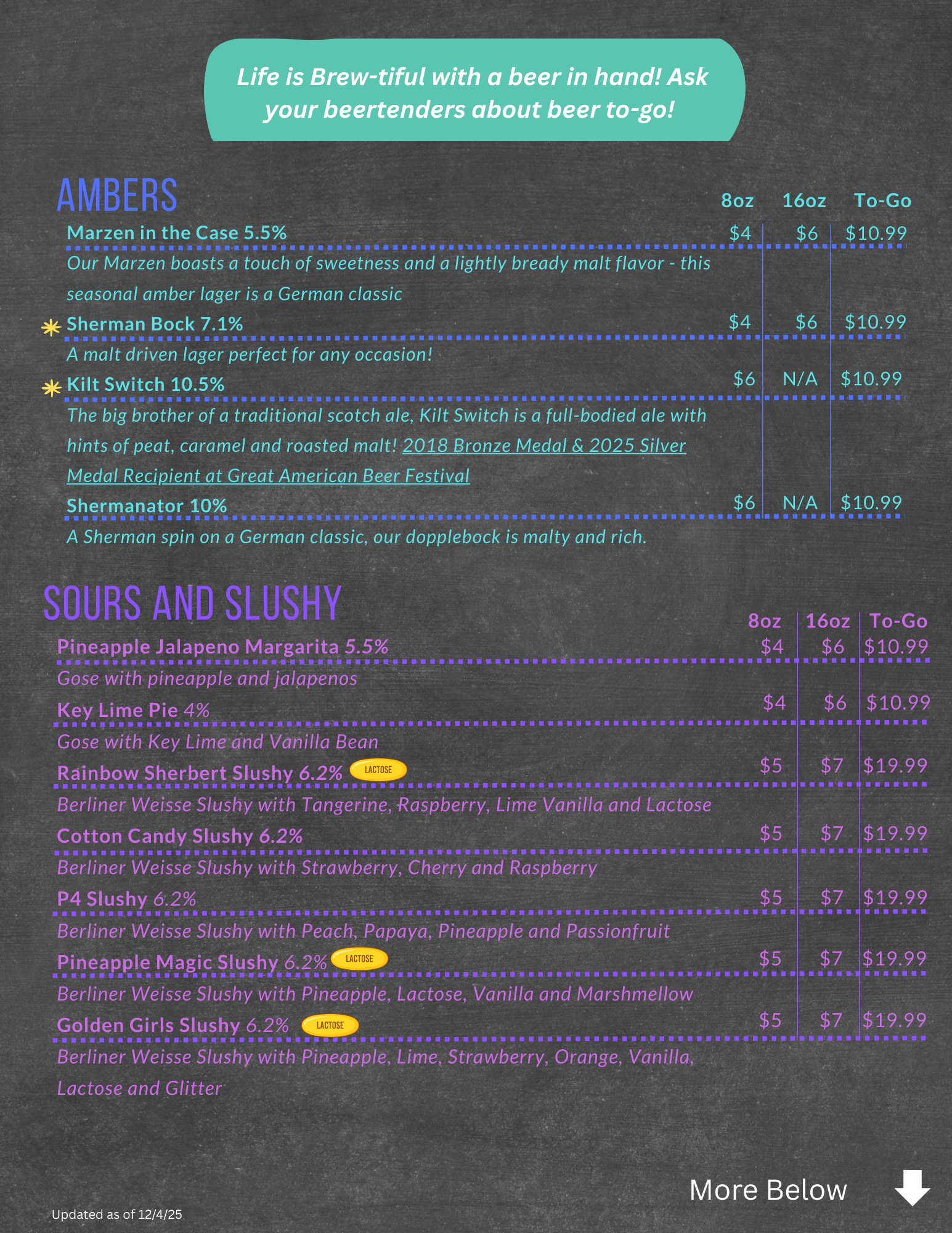Sherman Beer Menu