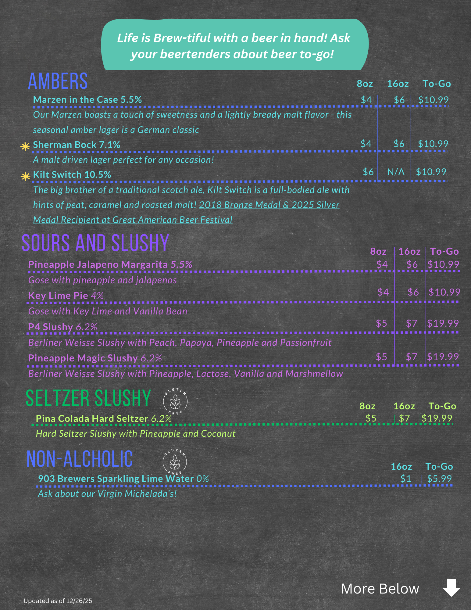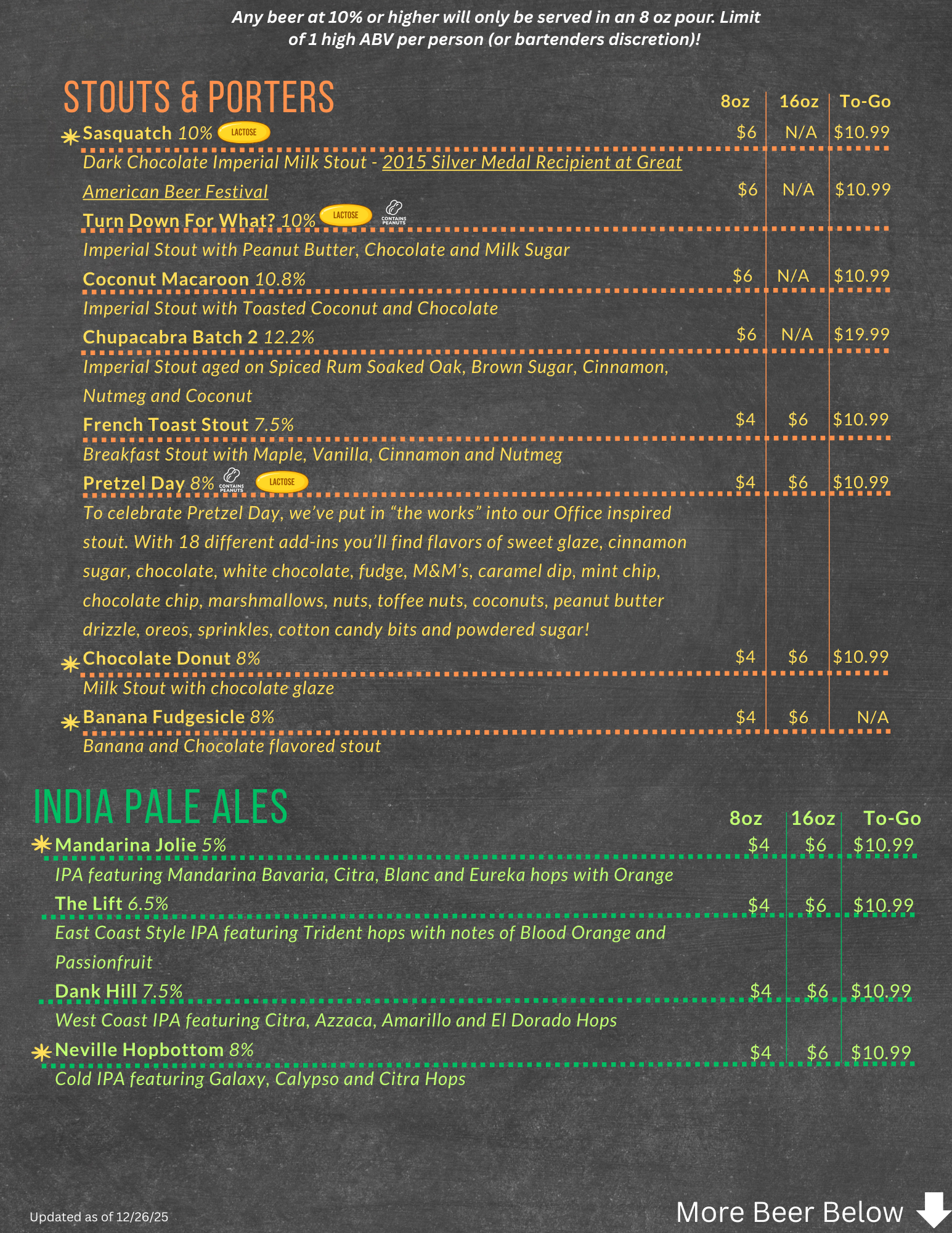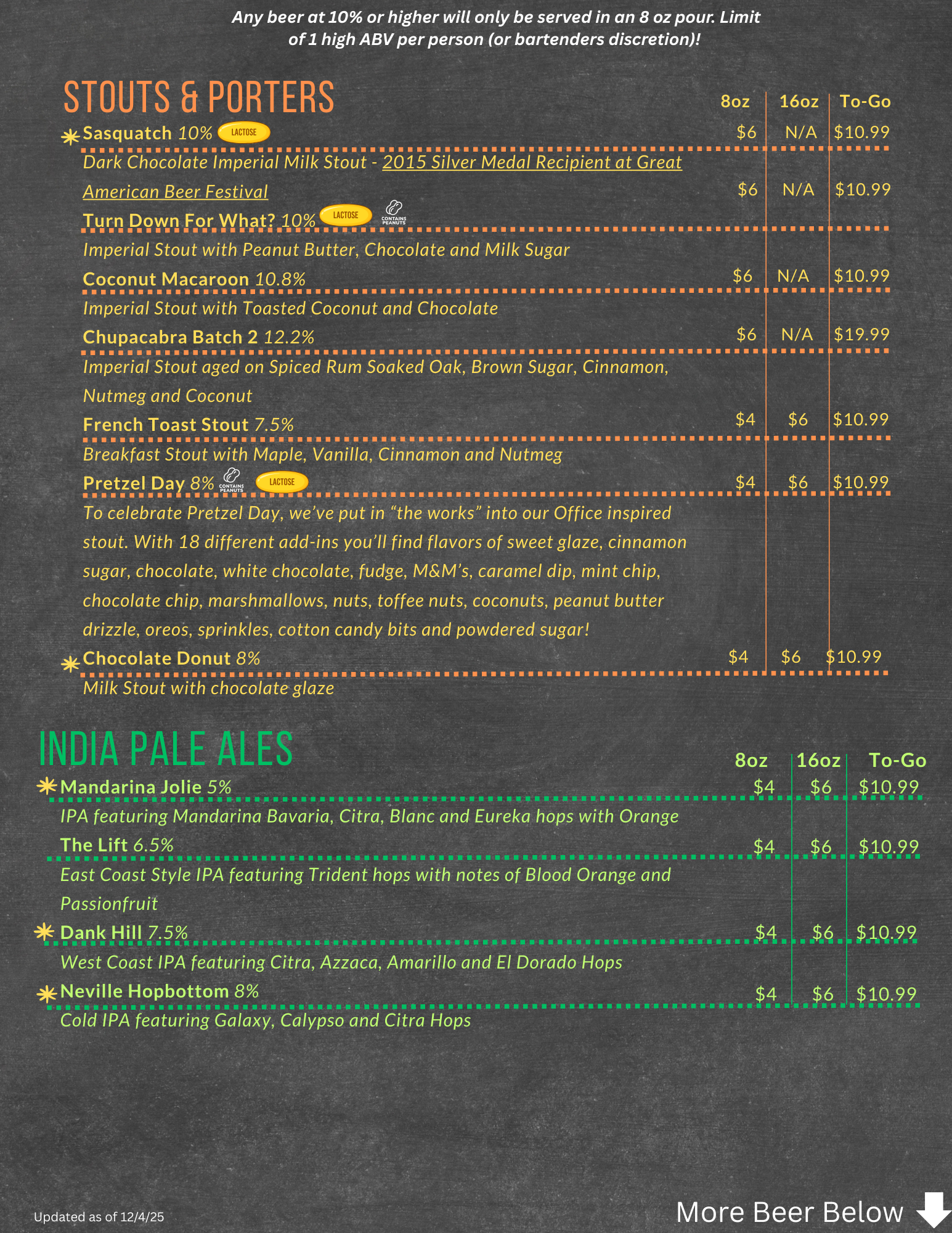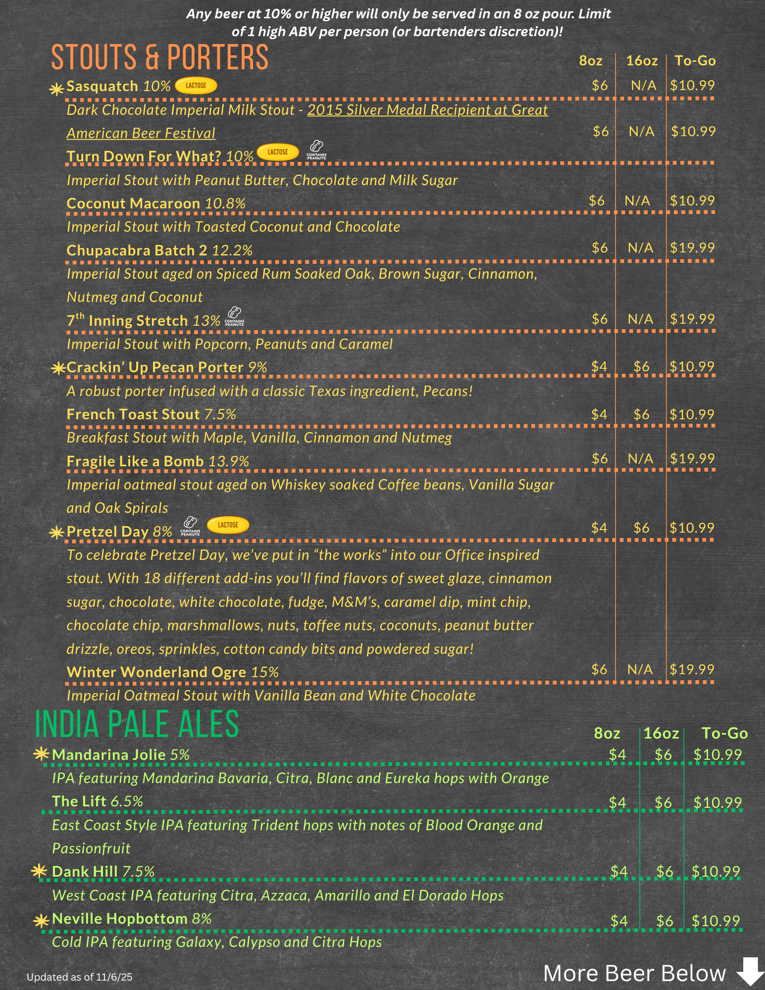 Sherman Beer Menu